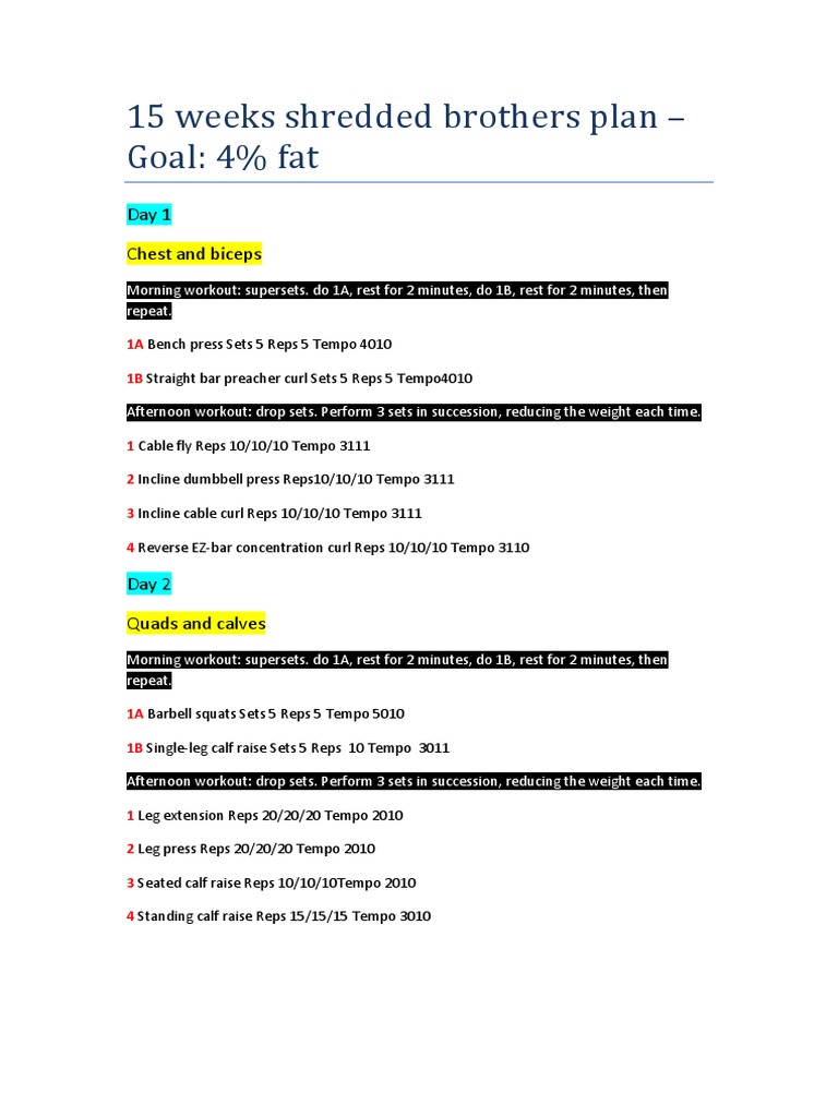 Our resistance training program will be focusing on hypertrophy muscle growth workouts. 8 Weeks Days Per Week. Summer shredding workout plan pdf.